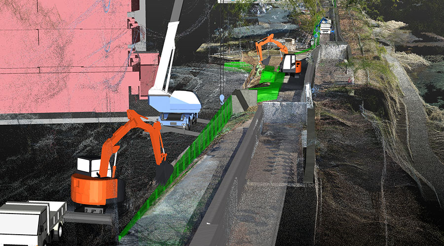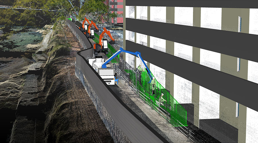 - 点群データから工事現場周辺の建物を3次元モデル化