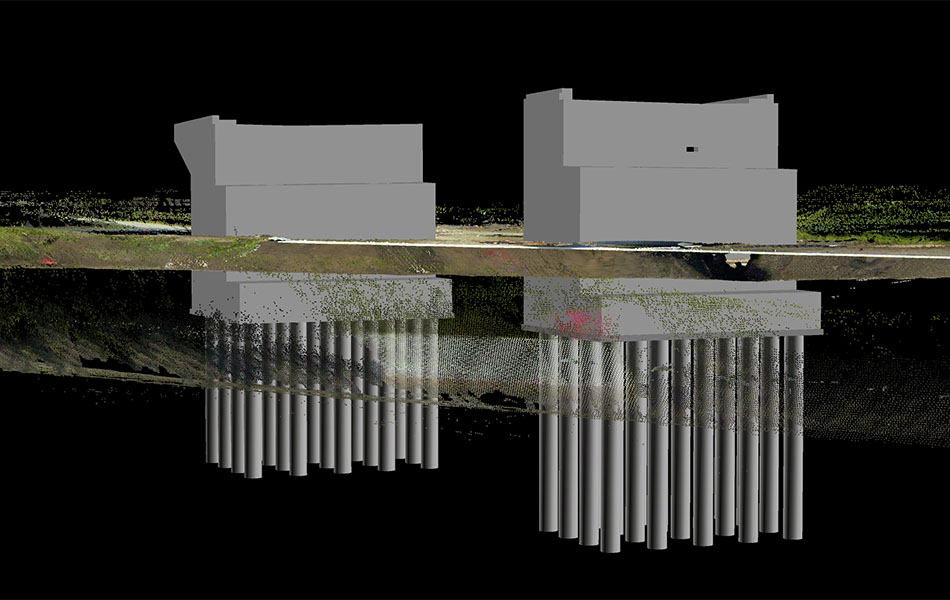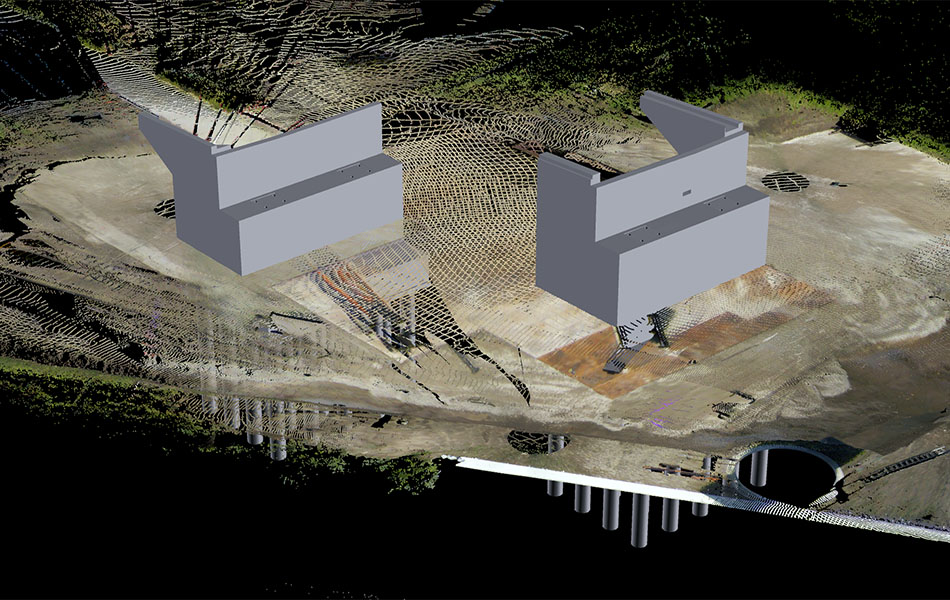 発注図を基にしたBIM/CIMモデル作成および、ICT構造物工の3次元出来形管理における測量・データ作成を行いました。