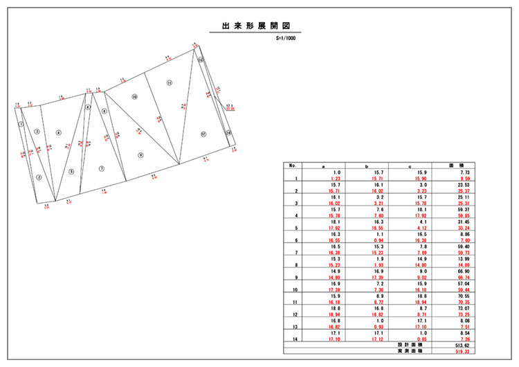 ICT法面工に対応した起工測量・出来形計測・管理図表作成を行いました。